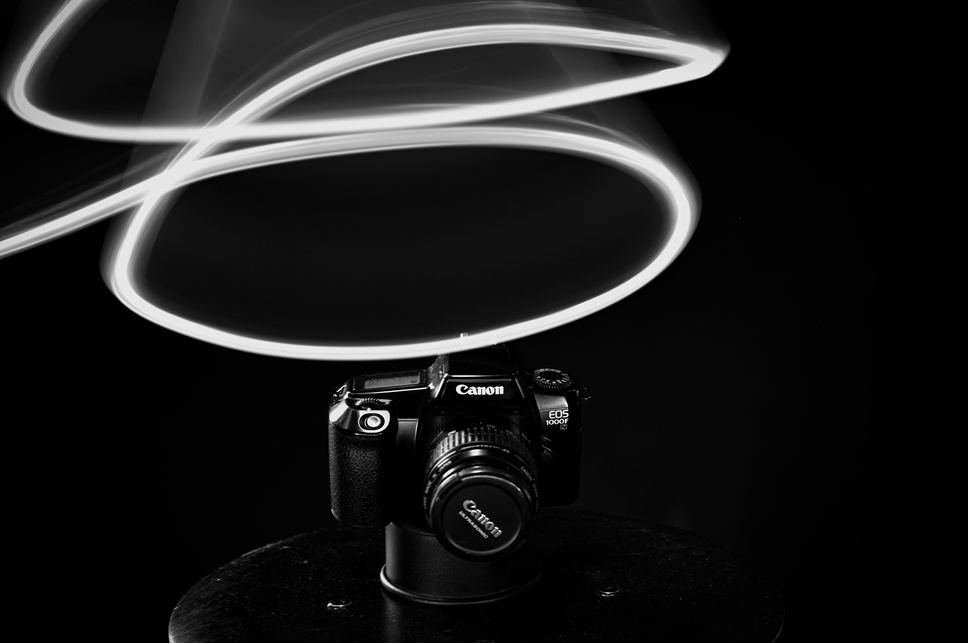 Black and white analog photography and light painting